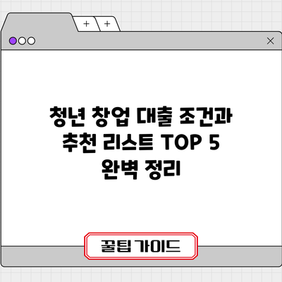 청년 창업 대출 조건과 추천 리스트 TOP 5 완벽 정리